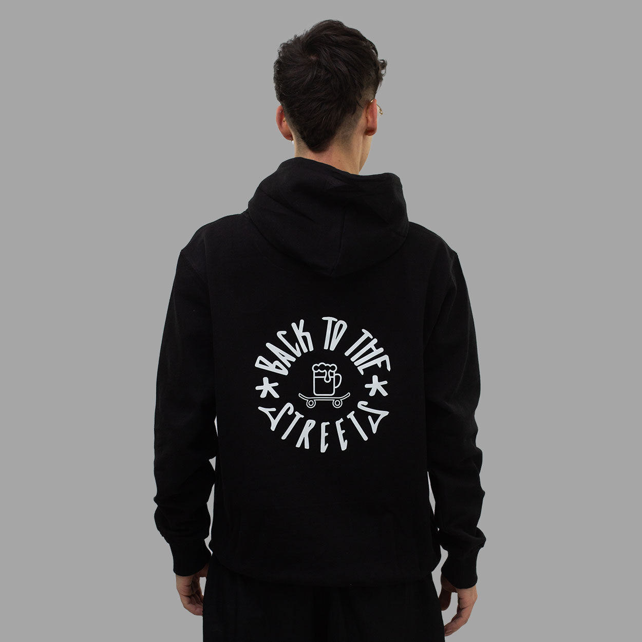 The Good Times Hood reflects everything that defines Back To The Streets for us. Skateboarding, beer and a good time.